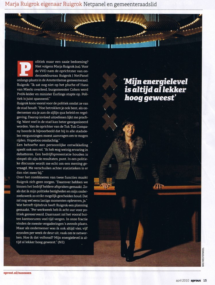 Ik sta in de top 50 Female Business Heroes! Een initiatief van Sprout en The Next Woman. Bij de keuze voor deze 50 vrouwen is gekeken naar aandelenbelang, omzet, aantal medewerkers, ambitie, internationale expansie, zichtbaarheid en in hoeverre ze rolmodel zijn voor andere ondernemers. Dat voelt best lekker hoor, zo tussen Annemarie van Gaal en Marlies Dekkers ;-)! Sprout, april 2010