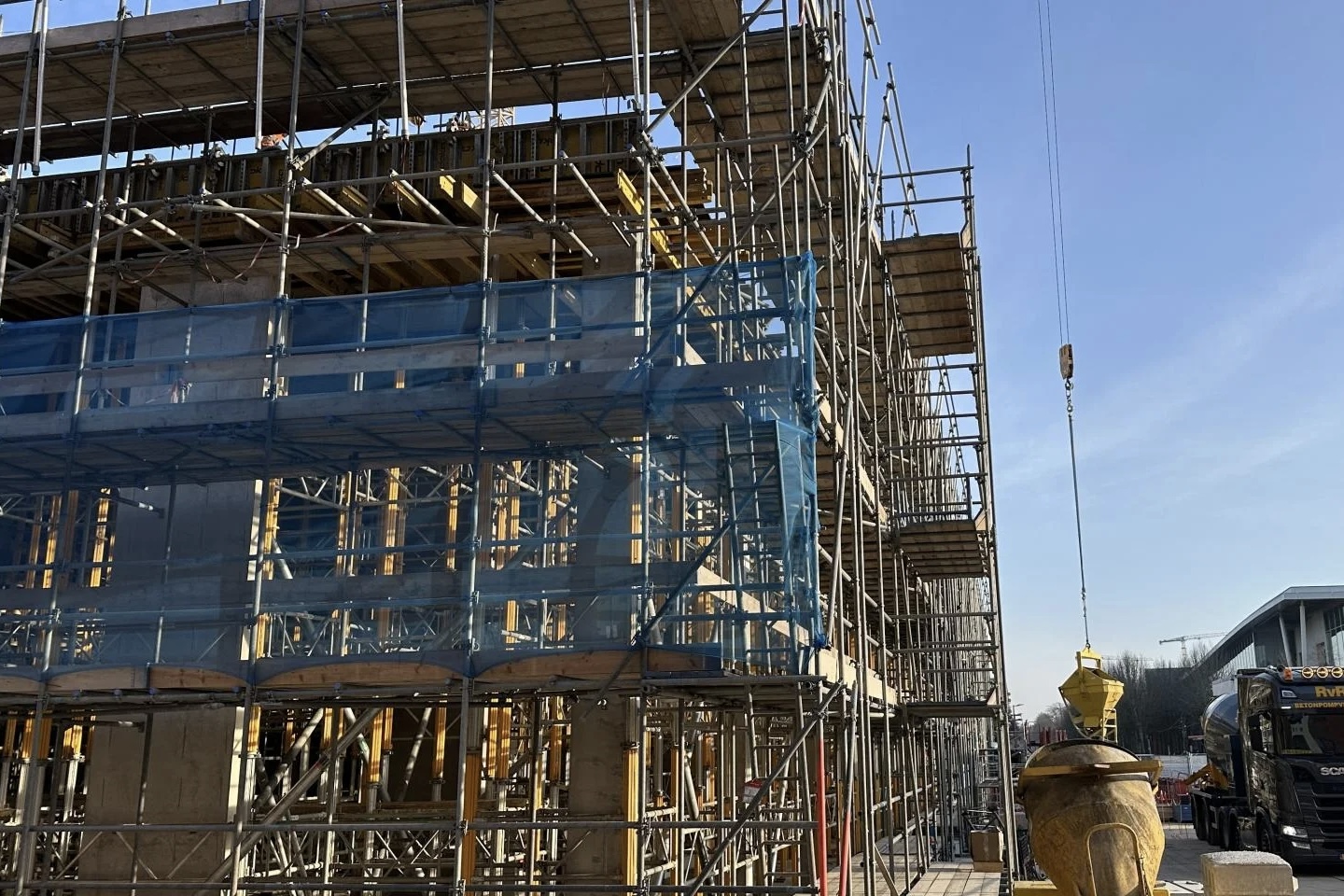Aannemer Boele & van Eesteren werkt sinds maart 2025 aan de bouw van SEM. Naast de hoge torenkraan is ook de vorm van het gebouw aan het Raadhuisplein al duidelijk zichtbaar. De aannemer plaatste de afgelopen tijd wanden, kolommen en tijdelijke ondersteuningspunten voor de verdiepingsvloeren.